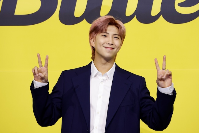 K-pop boy band BTS member RM poses for photographs during a photo opportunity promoting their new single 'Butter' in Seoul, South Korea, May 21, 2021. REUTERS/Kim Hong-Ji
