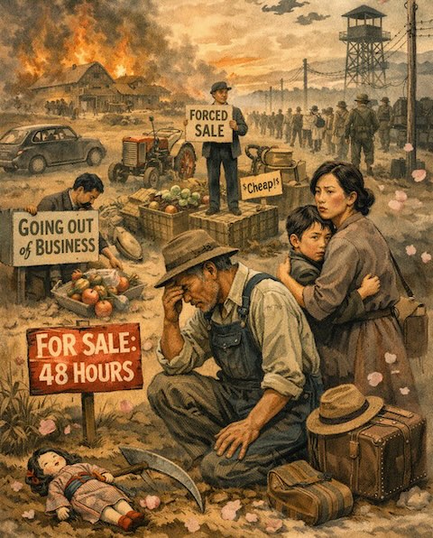 Farm equipment purchased for thousands of dollars sold for tens of dollars. Businesses built over decades were liquidated in days. One Japanese American farmer in California's Central Valley, who had spent years building a successful strawberry operation, was forced to sell his entire harvest, equipment, and leasehold for $200—a fraction of the season's potential earnings alone.