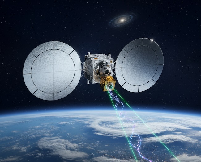 China's Micius Quantum Science Satellite is the world's first quantum enabled satellite. (Image by Gemini)