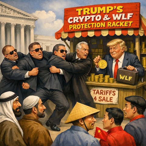 Fast billions had been amassed through crypto ventures powered by erratic tariff policies that scared foreign governments and big businesses into paying tribute for access and favorable policies.