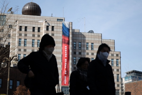 The Russian banner hung ahead of the fourth anniversary of the Ukraine war runs afoul of S. Korea's position that the war is illegal.