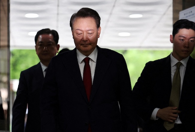 Former South Korean President Yoon Suk Yeol arrives at a court to attend a hearing to review his arrest warrant requested by special prosecutors in Seoul, South Korea, July 9, 2025. REUTERS/Kim Hong-Ji/Pool TPX IMAGES OF THE DAY/File Photo