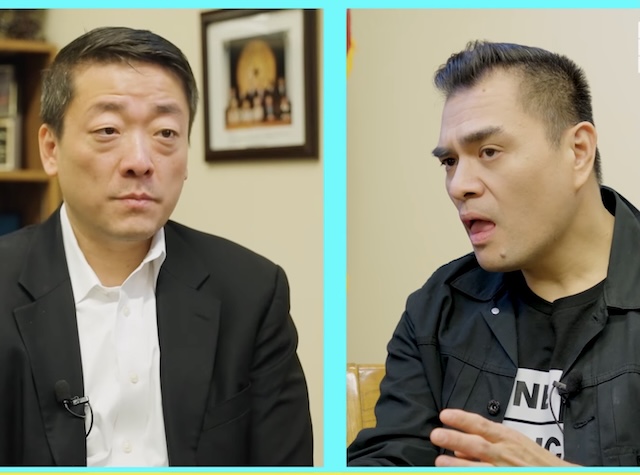 Rep Gene Wu (L) appeared on a 2024 podcast taping with Jose Antonio Vargas (R)
